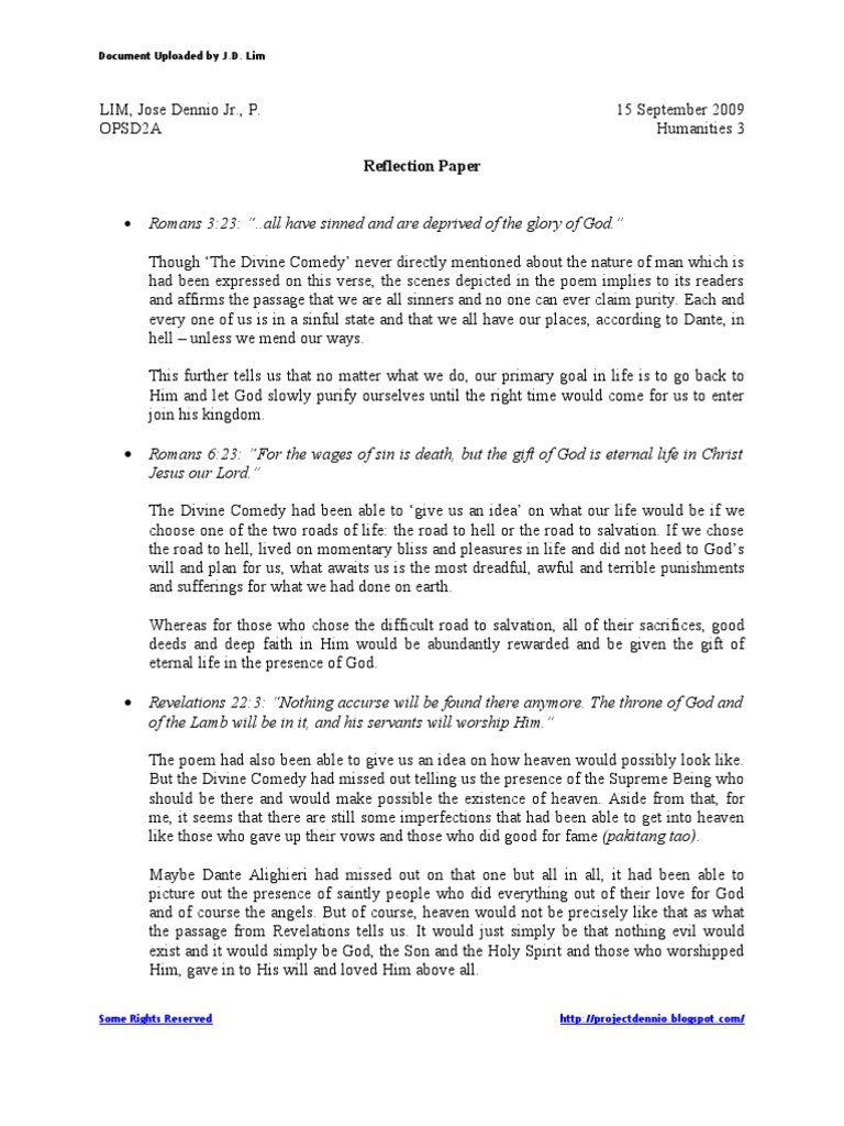 Reflection Paper On Specific Bible Passages In Relation To The Divine Comedy Pdf Divine Comedy Eternal Life Christianity